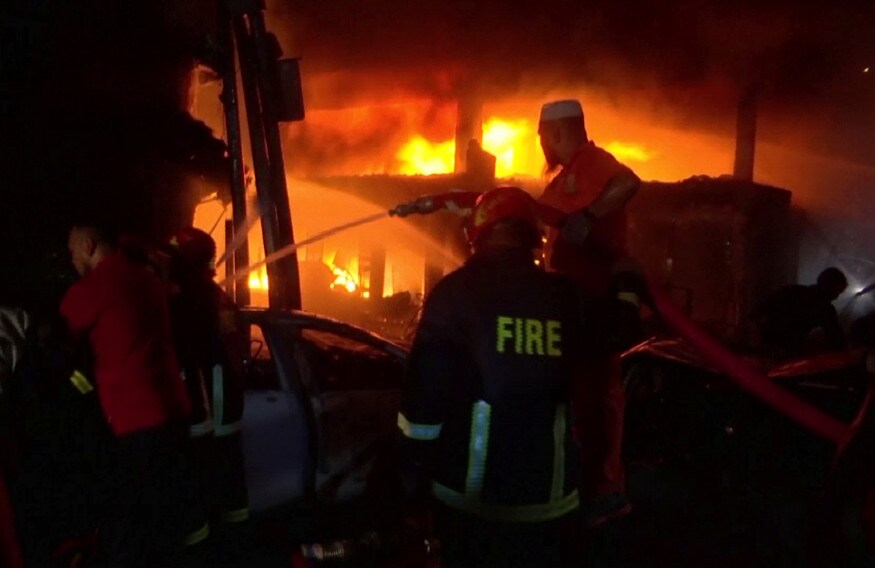 The fire is believed to have been started late Wednesday by a gas cylinder explosion which quickly spread to at least five buildings.